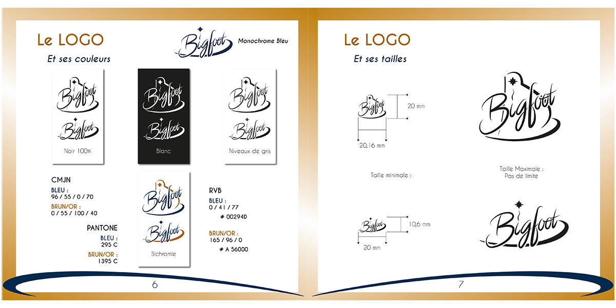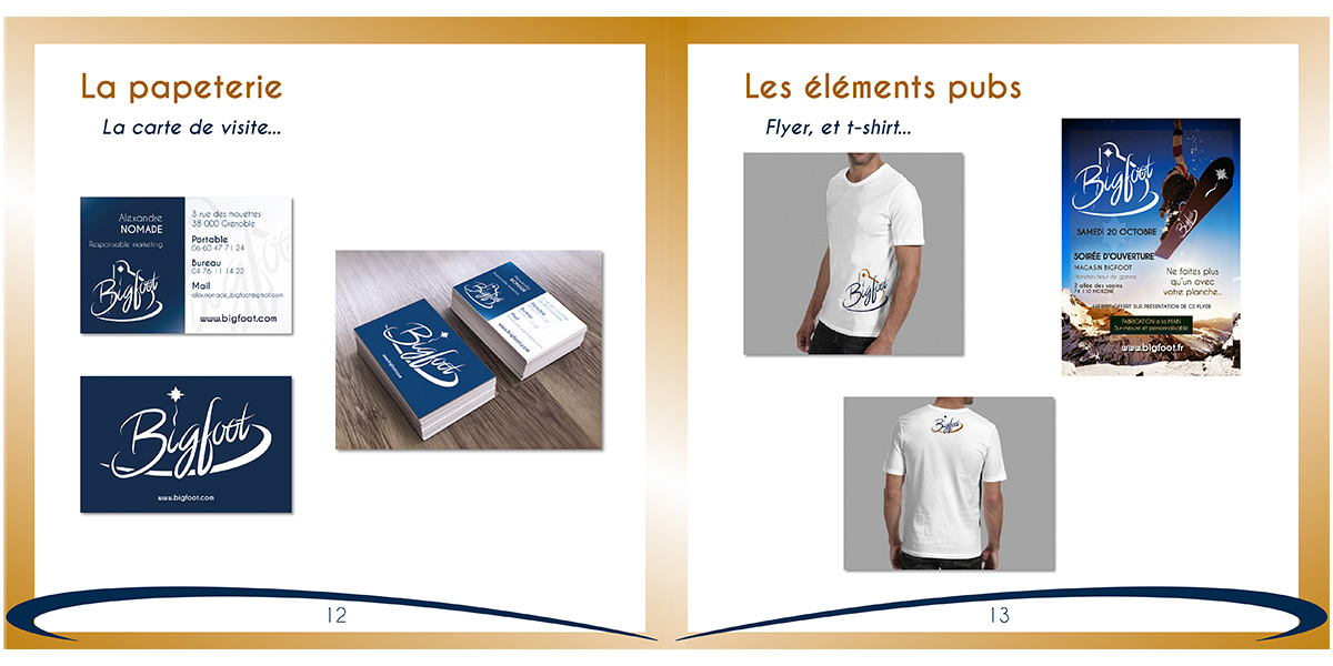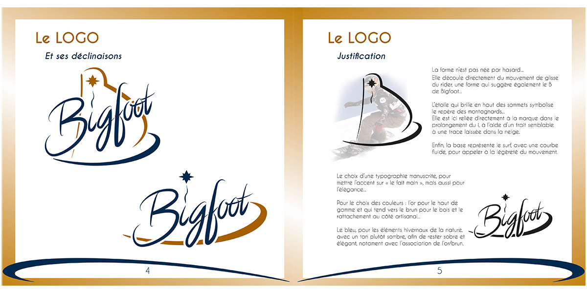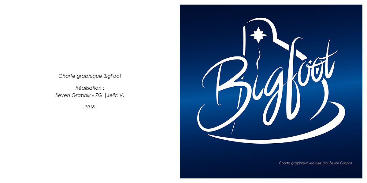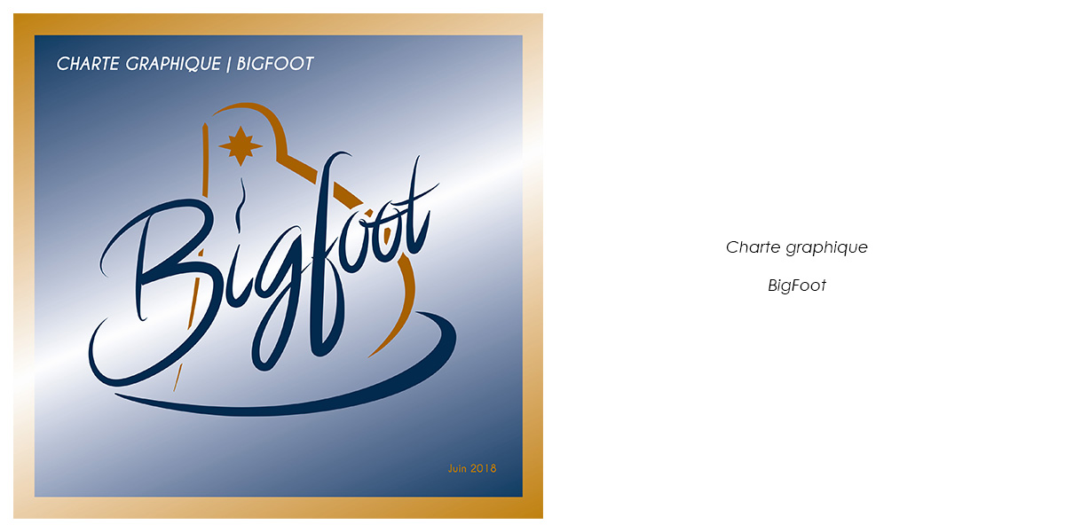 Charte graphique développée pour le lancement d'une nouvelle marque de Snowbord haut de gamme : Bigfoot La charte comprend la création du logo, ses couleurs et ses déclinaisons, ainsi que des déclinaisons graphiques pour différents support de communication.